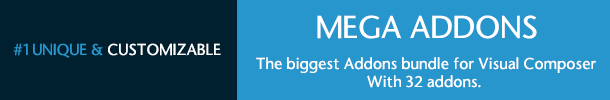 Mega Addons For Visual Composer ~ The best Addon bundle for Visual Composer With 32 addons. This Addon Bundle provide you everything for your Visual Composer Page Builder. Addons for Visual Composer features professional looking, easy to use yet highly functional extensions that can be used in a WPBakery Visual Composer page builder.